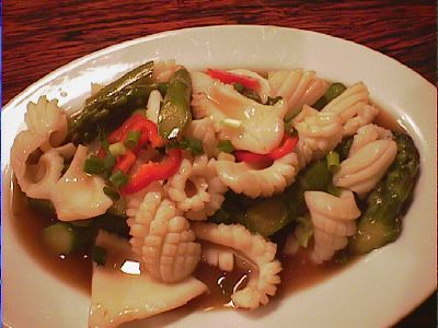 - アスパラガス入りイカ炒め/1200yen x 2