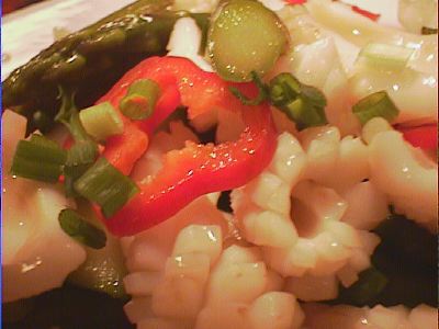 - イカがやわらかくて、アスパラも季節だしおいしい。ピーマンもよかった。(め)