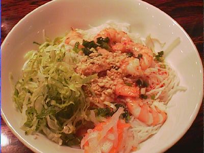 - ビーフン、きゅうり、レタス、えびとチャーシュー。チャーシュがなんともうまい。(め)