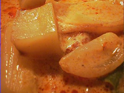 - いもはさつまいもだったと思う。ココナツミルク入り。さらっとしてる。おいしいよ。(め)