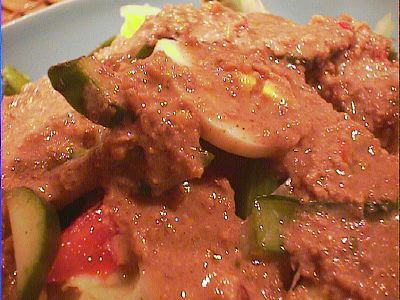 - ピーナッツソースが薄いと思った。それから、普通はガドガドサラダ温かいんだけど、これは冷やしてあったみたい。(よ)
