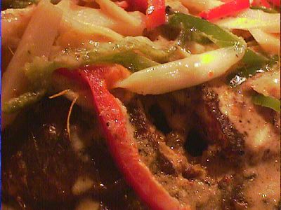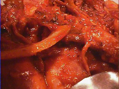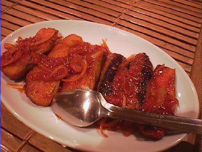 - ソースは辛くて、茄子はジューシーで美味しかった。(よ)