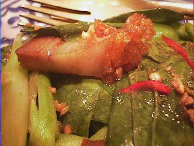 - カナームーコー(豚のカリカリ揚げ入りカーナー葉炒め)/1,000円×2