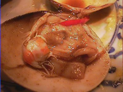 - カニが入ってるのがあったけど、カニには寄生虫がいる可能性があるから、カニは食べない方がいいんだよ。それにカニの入ってる貝は、貝が痩せちゃっててうまくないんだよね。(く)