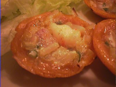 - ココナッツのタルトっぽい台にエビとかの具がのってる。これをたこ焼というのは変だね。(CAMUS)