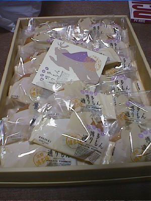 マシンルームでのおやつは、JKさんのお土産「博多通りもん」。