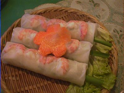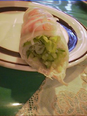 - これは好きなメニューのひとつなんだよ。ミュンの手で巻いて食べるタイプのね。ライスペーパーを手で巻いてね。巻くのつらいんだけど、全部まいてこごれそうになるところをがぶっとかぶりつくところがいいね。(め)