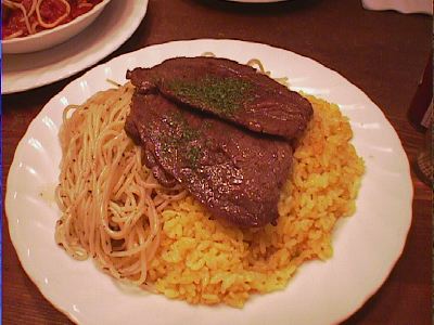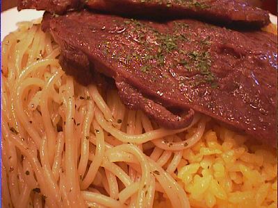 牛肉の薄切りステーキ・スパゲッティとバターライス添え(大盛り)