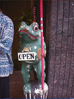 入口横には、こんなカエルの置物があります。