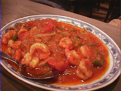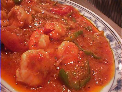 - ブラードソースでからめ、炒めた、エビの辛煮。(*)