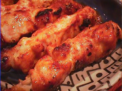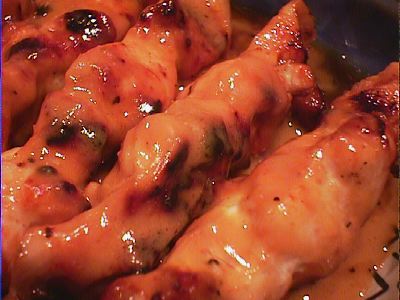 - インドネシア風焼き鳥。唐辛しの風味のホットなタレで。(*)