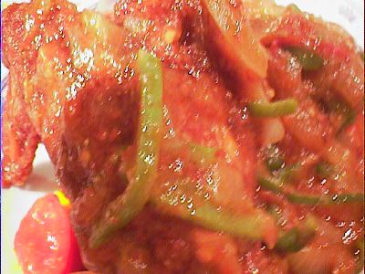 - インドネシア独特のブラード・ソースをベースに本格的辛味の鶏料理。(*)