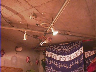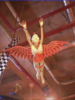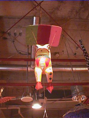 地下1階入口付近の天井にも妙な人形がつるされていました。