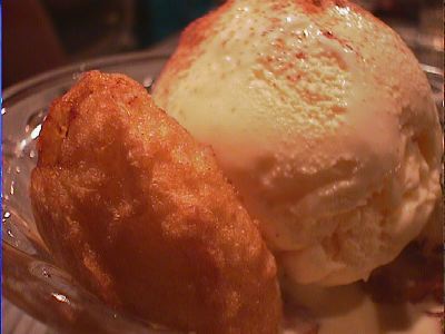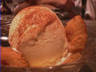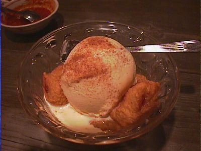 - 揚げたてのバナナのトロリとした舌ざわりと冷たーいアイスクリームのベストカップル。デザートにどうぞ。(*)