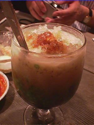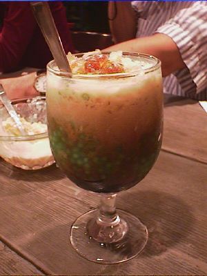 - 日本でもすっかりおなじみのタピオカをインドネシア独特のグラメラソースとココナツミルクと共にこくのあるデザートに仕上げました。よくかきまわしてからどうぞ召し上がれ。(*)