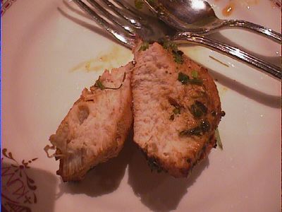 なんか、肉が鳥から切り取ったそのままじゃなくて、ささみみたいなのまるめてあるようなかんじだった。わたしが食べたところだけかな?(い)