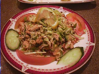 チキンティッカをほぐして野菜と混ぜたサラダという感じ。(め)
