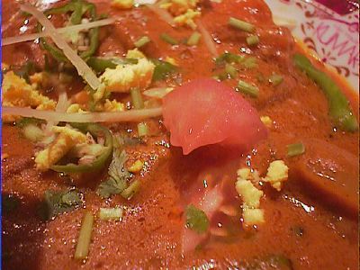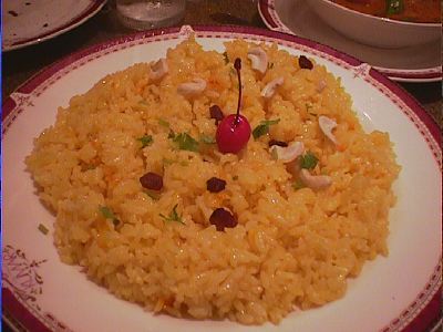 サフランライスにもさくらんぼがのってたね。こういうさくらんぼの使い方、他のインド料理屋さんでは見かけないね。(び)