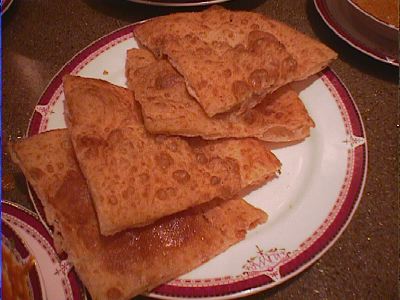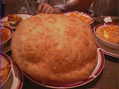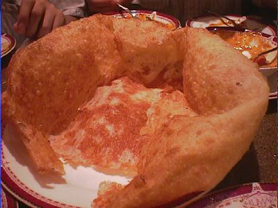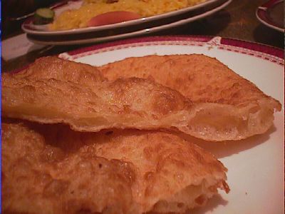 9人でふたつのテーブルに分かれて座ったのだけど、片方のテーブルにきたバトウラは膨らんだまんまだったのだけど、もう片方のテーブルにきたのは、つぶして切ってありました。プーっと膨らんだのをちぎって食べる楽しみもあるので、つぶして切って出てくると残念だね。(び)