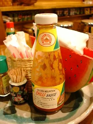 まあ、少し砂糖とかニンニクが入ってるから、甘みがすこしあってアンコールワットのとほぼ同じだね。ただの辛いソースじゃないから、試しにかけてみるといいよ。(め)