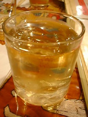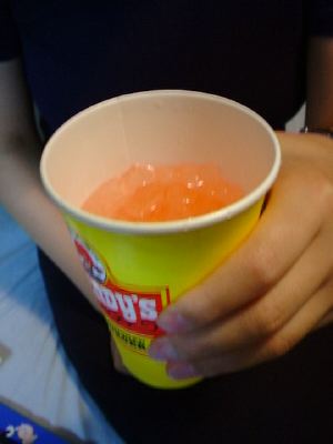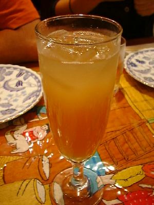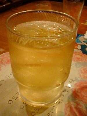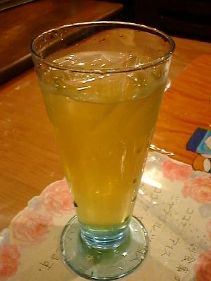 氷の上にぬるいジュースを注いでだしていた。(く)