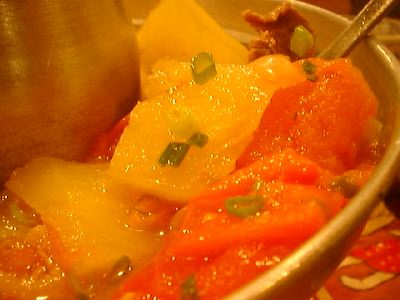 このスープはなかなかよかったね。干しエビが入ってる。トマトやパイナップルが入ってる料理が苦手なひとにはすすめられないけど、大丈夫なひとには絶対おすすめだね。(め)