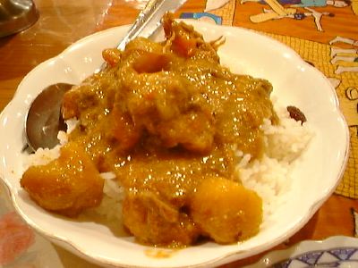 ちゃんとじゃがいもじゃなくてさつまいもが入ってる。カンボジア料理では正しいのはさつまいもなんだよね。鳥肉、にんじん、さつまいも。(め)