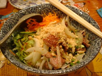 まさに牛肉そうめん。ビーフンじゃなくて、ほんとにそうめん。魚醤が少々。(め)