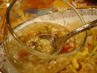 唐辛子のナンプラー漬みたいなのがかけ汁としてついてきた。(め)