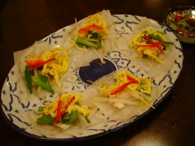 雰囲気としては生春巻界のオープンサンドだね。手づかみじゃないと食べれないよ。(め)