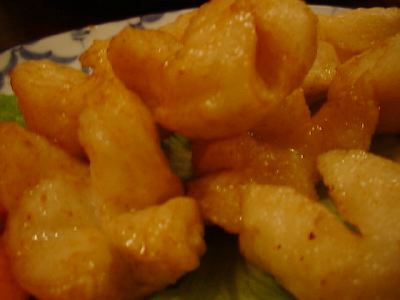 団子にしたあと、切れ目を入れて揚げてある。タレがからみやすくていい。食べやすかった。(め)