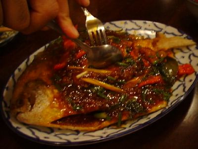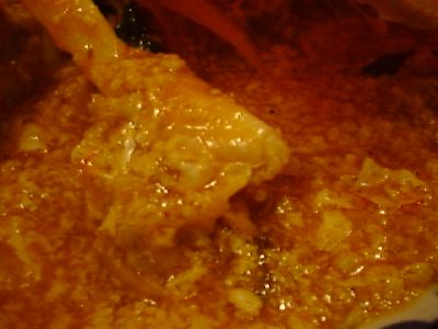 この店は田舎風カレーが4種類ぐらいあって(東/北/東北/南)、どれがおすすめかって聞いたら、「辛いのは南部」って言われたので頼んでみました。一般的には、南の方はそんなに辛い料理はでないんだよね。北が辛くて南はマレーっぽいはずなんだ。結果としては、辛さがどうこうということはなかった。魚カレーだったんだけど、若干魚のなまぐささがあったので苦手なひとはやめといた方がいいかも。具は煮崩れた魚の身と、ナスと、たけのこかな。珍しいけど、あまりおすすめしません。(め)