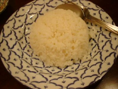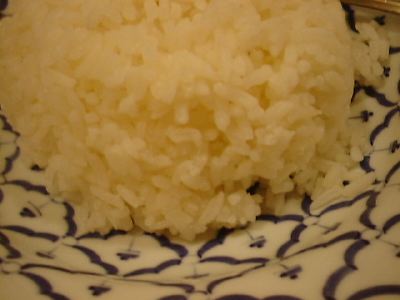 ふつうの日本米...だったかな? ブレンドかもしれない。写真見ると長いね。(め)