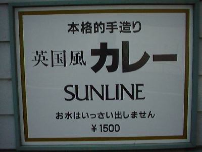 お店の外の看板にはカレー(1,500円)と水は出ないということが書かれています。
