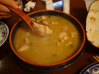 シチューというより、さらさらしてるからスープかな。だしがきいている。ピーナツソースは入ってるんだけど、そんなにピーナツソースってわけじゃない。(め)