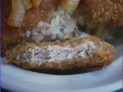 ころもはあくまでも薄くて、噛むと汁がじわっと出てくる、そして肉はとてもやわらかい。ご飯の炊きかたもうまい。かつが大きくてボリュームあっていい。(な)