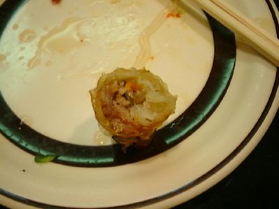 野菜が多すぎ。もやしばっかりで。皮がちょっとねちょっとしてて。(JK)