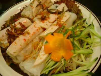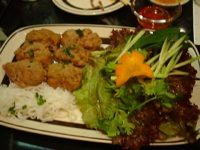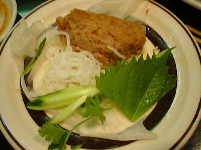 他のミュンの支店に比べてパクチーが豊富に使われてる。サラダがわりと辛かったし、ニョクマムもつよくて、味のめりはりがきいている。(め)