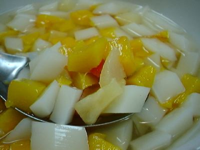 - シロップ部分の甘み、ゼリー部分の歯触りとも他とはひとあじ違う。んまいっす。大皿一杯かかえたい。(い)