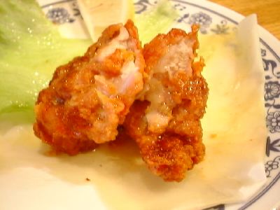 多分、スパイスをつけてからころもをつけて揚げてるんだと思うけど、スパイシーだね。肉もジューシーだし、美味しかったよ。普通の唐揚げだと思ってあなどってはいけない。(び)