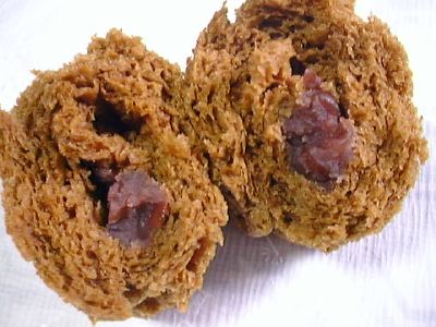 黒砂糖かかった蒸しパンのなかに、アンコがはいったもの。名物らしいけど、こちらよりもとら焼きのほうがうまい。(な)