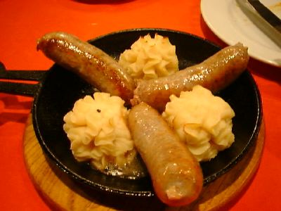 太いチョリソだね。普通チョリソっていうと、もうひとまわりぐらい小さいのよくみかけるけど、やはりこれぐらい太いの食べたい。噛んだときに、肉汁がでてきてなんともジューシー。つけあわせのポテトもうまかった。(な)