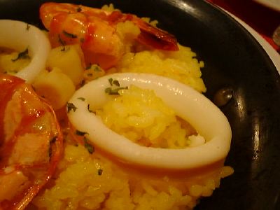 見ためただのイエローライスっぽくて味があまりないように感じるかもしれないが、しっかり旨味が染み込んでてうまい。サフランも多く使用してるようで味がいいよ。(な)