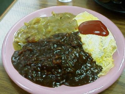 - 三種の区画分けはなかなか見事だったね(笑)。量も結構あったね。皿いっぱいにご飯のってるわけだし。(な)