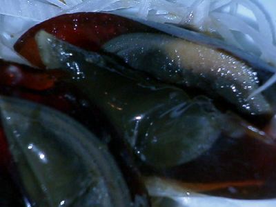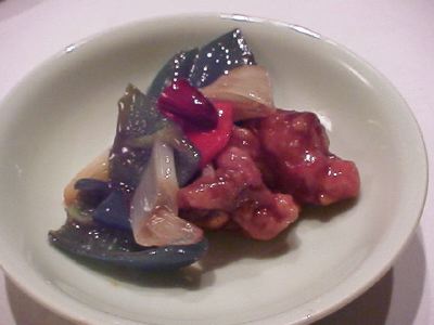 - カエルの肉は美味しいけど小骨がいっぱいあるから注意して食べないといけないね。骨のまわりが美味しいんだけど。腱みたいな感じの肉だね。タレは酢豚みたいなタレなんだけど、唐辛子がちゃんと入っていてよかったよ。(め)
