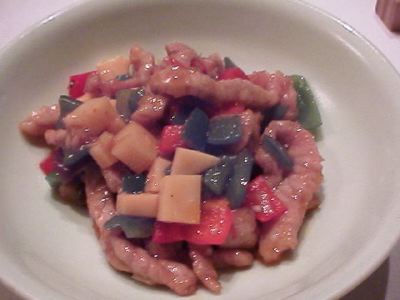 - 「魚香」ってメニューには書いてあるけど、これは「魚香」じゃないね。それに肉の切り方がばらばらなのが気になる。他の材料も切り方が均一じゃないのが非常に気になった。各素材ごとに大きさが均一じゃないと、味にばらつきがでる。味的にはどこでも食べられるものだね。これを食べて「魚香」とはこんな味だとは思わないように。(な)