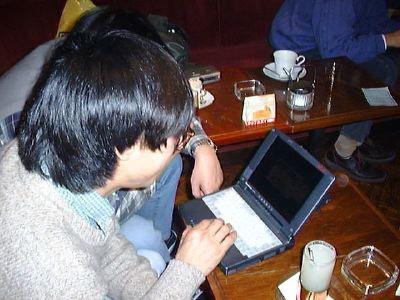 itojunの膝の上にあるのは32MB化HP-200LXですね。