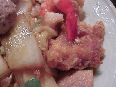 具がちょっと面白い。ツクネみたいなお団子や鶏の唐揚げなんかが入ってる。具のバラエティ以外はごく普通のやわらかいやきそば。(び)