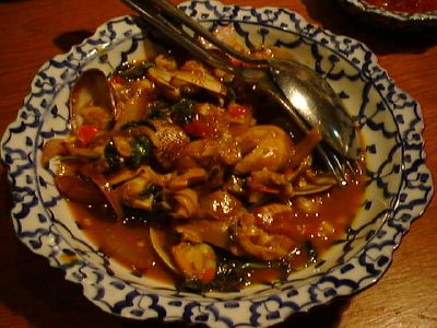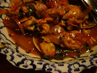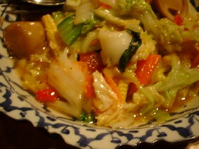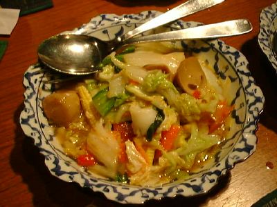 - ちょっとした八宝菜みたいにみえるけど、タイ料理のエッセンスが入ってる。イカと白菜の区別がつきにくいので注意。(び)