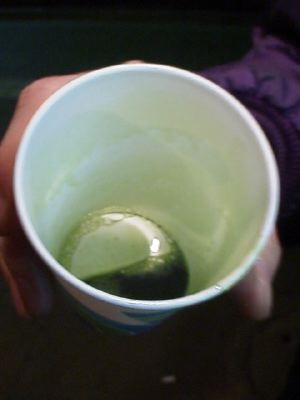 集合場所の中野駅に少し早くついてしまったinaは、中野駅北口にある青汁スタンドで青汁を一杯。